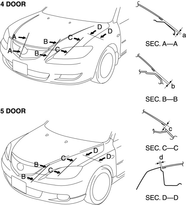 - c: -0.5-2.5 mm {-0.019-0.098 in} (4 door)