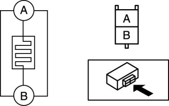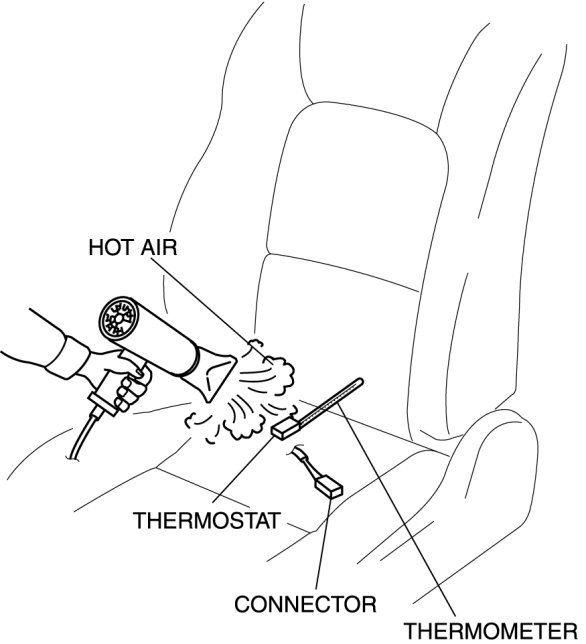 4. While inspecting for continuity between the terminals A and B of the connector, use a dryer to warm the thermostat of the seat warmer unit on seat cushion.