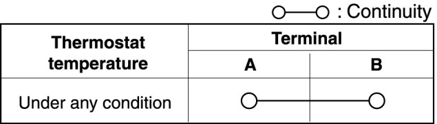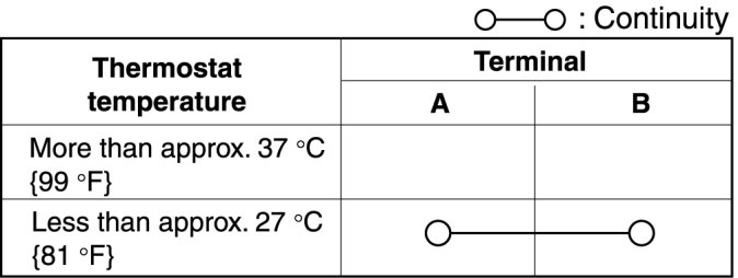 3. Verify that the continuity between the seat warmer terminals is as indicated in the table.