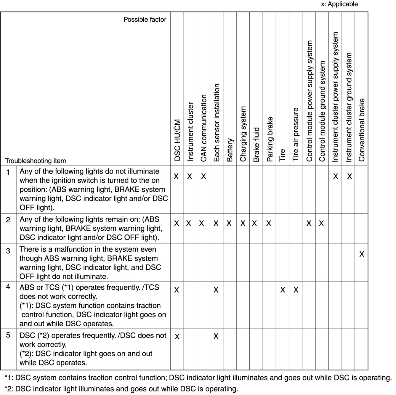 SYMPTOM TROUBLESHOOTING [DYNAMIC STABILITY CONTROL (DSC)]