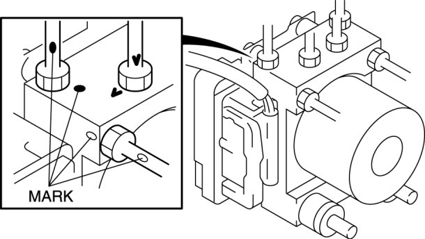 1. Place an alignment mark on the brake pipe and ABS HU/CM.