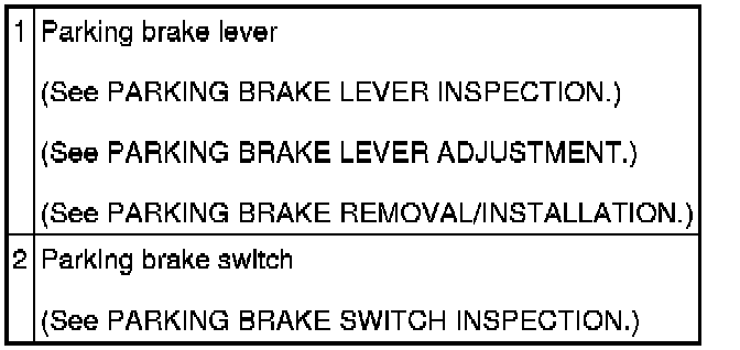 PARKING BRAKE SYSTEM LOCATION INDEX