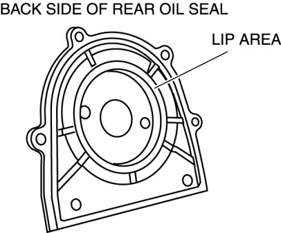 4. From the back side of the rear oil seal, verify that there is no damage or separation in the lip area of the rear oil seal.