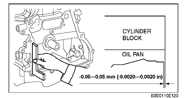 3. Use a straight edge to align the junction of the oil pan and the cylinder block on the engine front cover side.