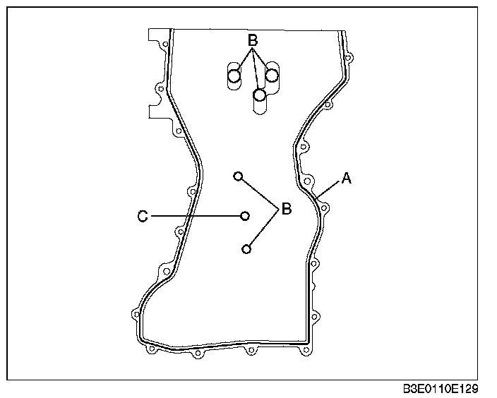 ^ Install the engine front cover within 10 min after applying the silicone sealant.