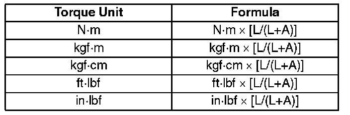 Torque Formulas^ When using a torque wrench-SST or equivalent combination, the written torque must be recalculated due to the extra length that the SST or equivalent adds to the torque wrench. Recalculate the torque by using the following formulas. Choose the formula that applies to you.