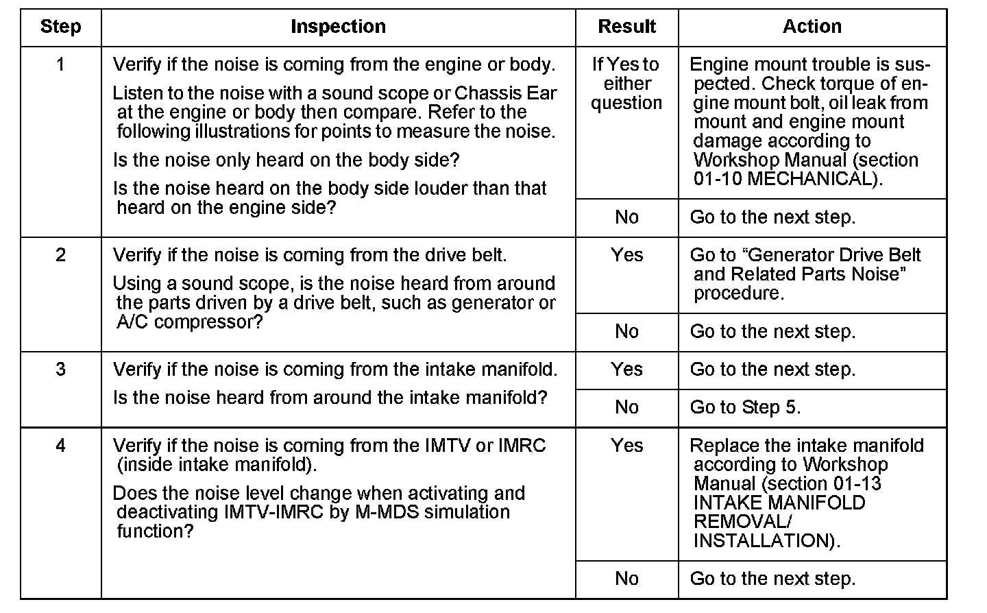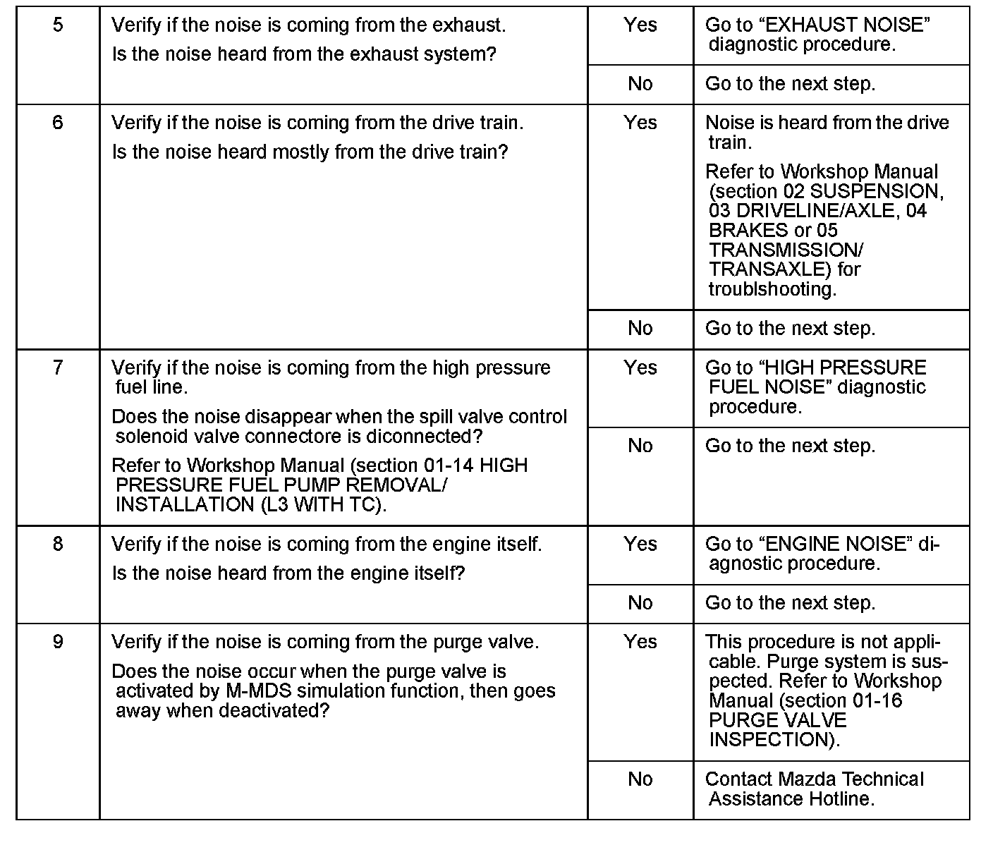 DIAGNOSTIC PROCEDURE FOR ENGINE NOISE REPAIR