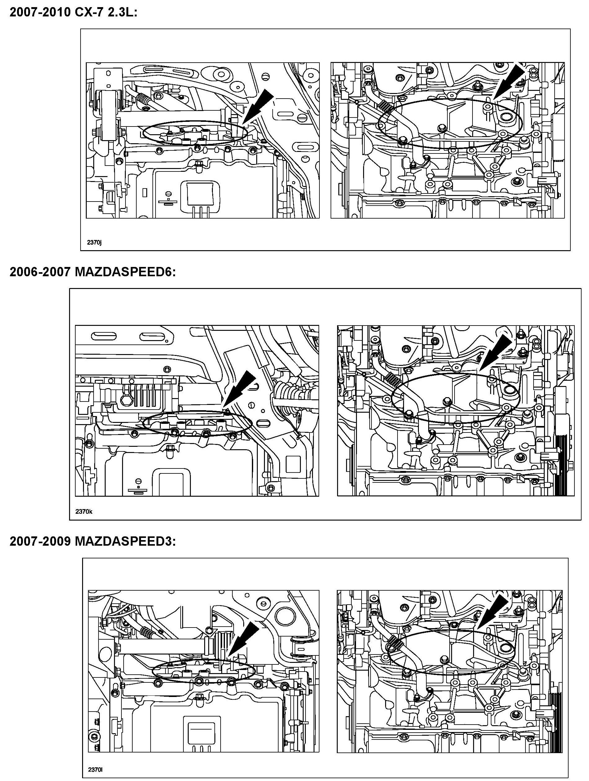 2007-2010 CX-7 2.3L - POINTS TO MEASURE THE NOISE AROUND THE ENGINE MOUNTS: