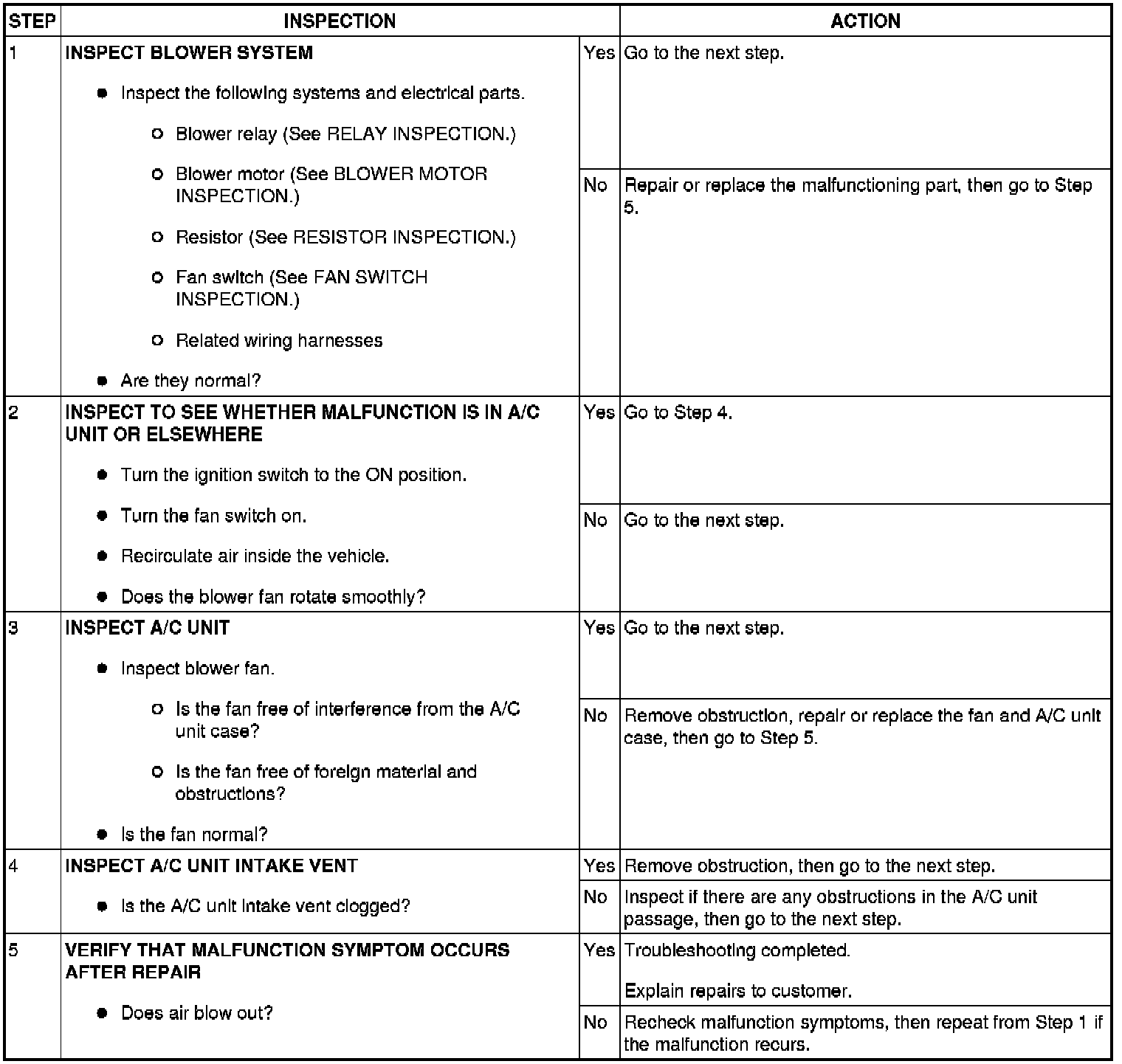 NO.3 AMOUNT OF AIR BLOWN FROM VENTS DOES NOT CHANGE