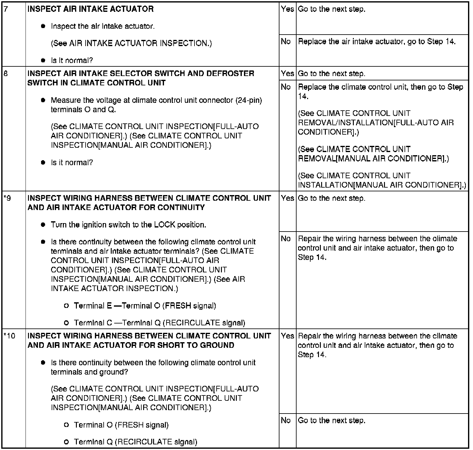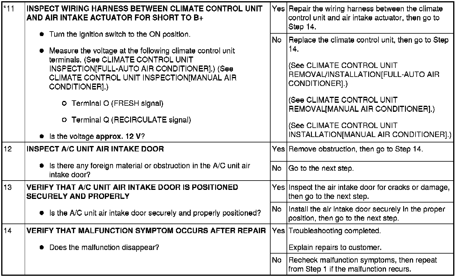 - When performing an asterisked (*) troubleshooting inspection, shake the wiring harness and connectors while doing the inspection to discover whether poor contact points are the cause of any intermittent malfunctions. If there is a problem, inspect to make sure connectors, terminals and wiring harness are connected correctly and undamaged.