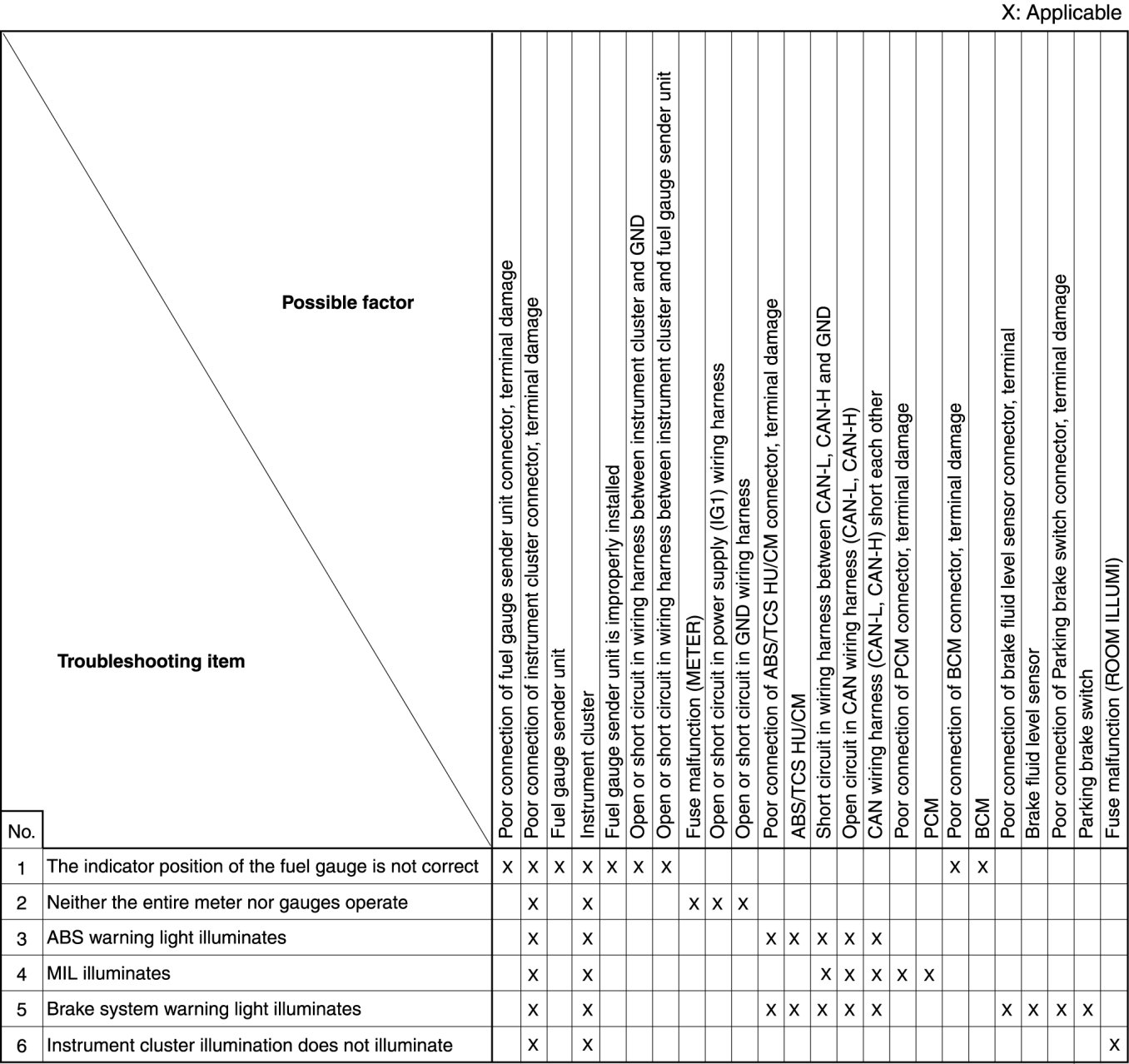Quick Diagnostic Chart [Instrument Cluster]: