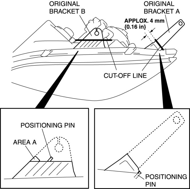 1. Cut off the front combination light brackets at the locations shown in the figure.