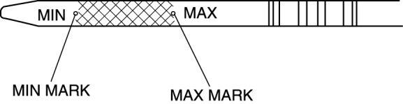 4. Remove the dipstick and verify that the oil level is between the MIN and MAX marks on the dipstick.