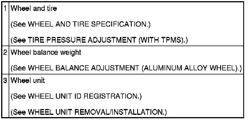 WHEEL AND TIRES LOCATION INDEX