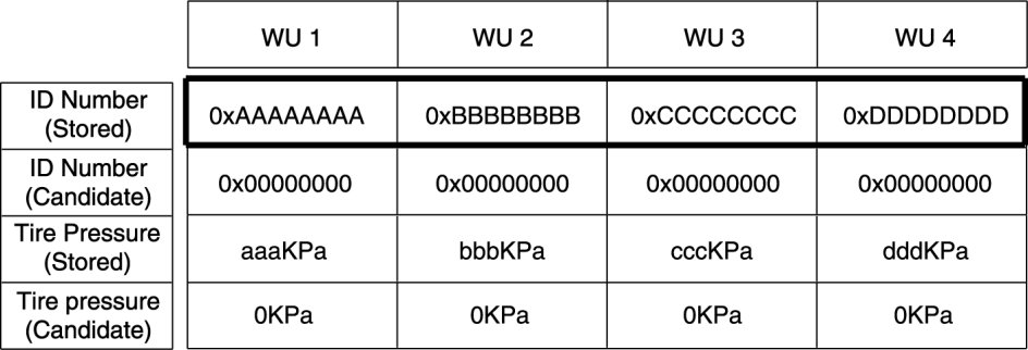 - When the vehicle is driven, the four ID numbers in the bold cell of the chart change at the same time the ID registration finishes.