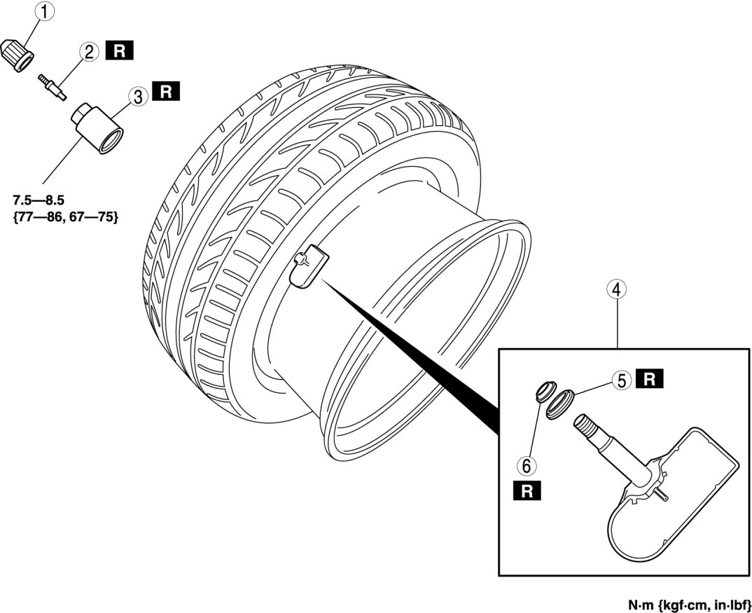 5. Fill the tire with air and verify the valve nut tightening torque.