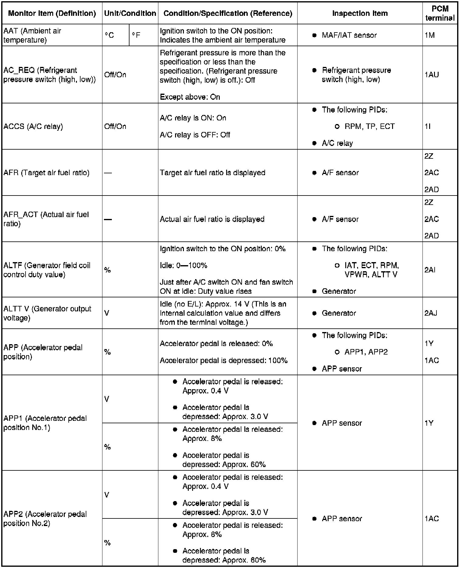 PID/Data Monitor Table (Reference) (Part 1):