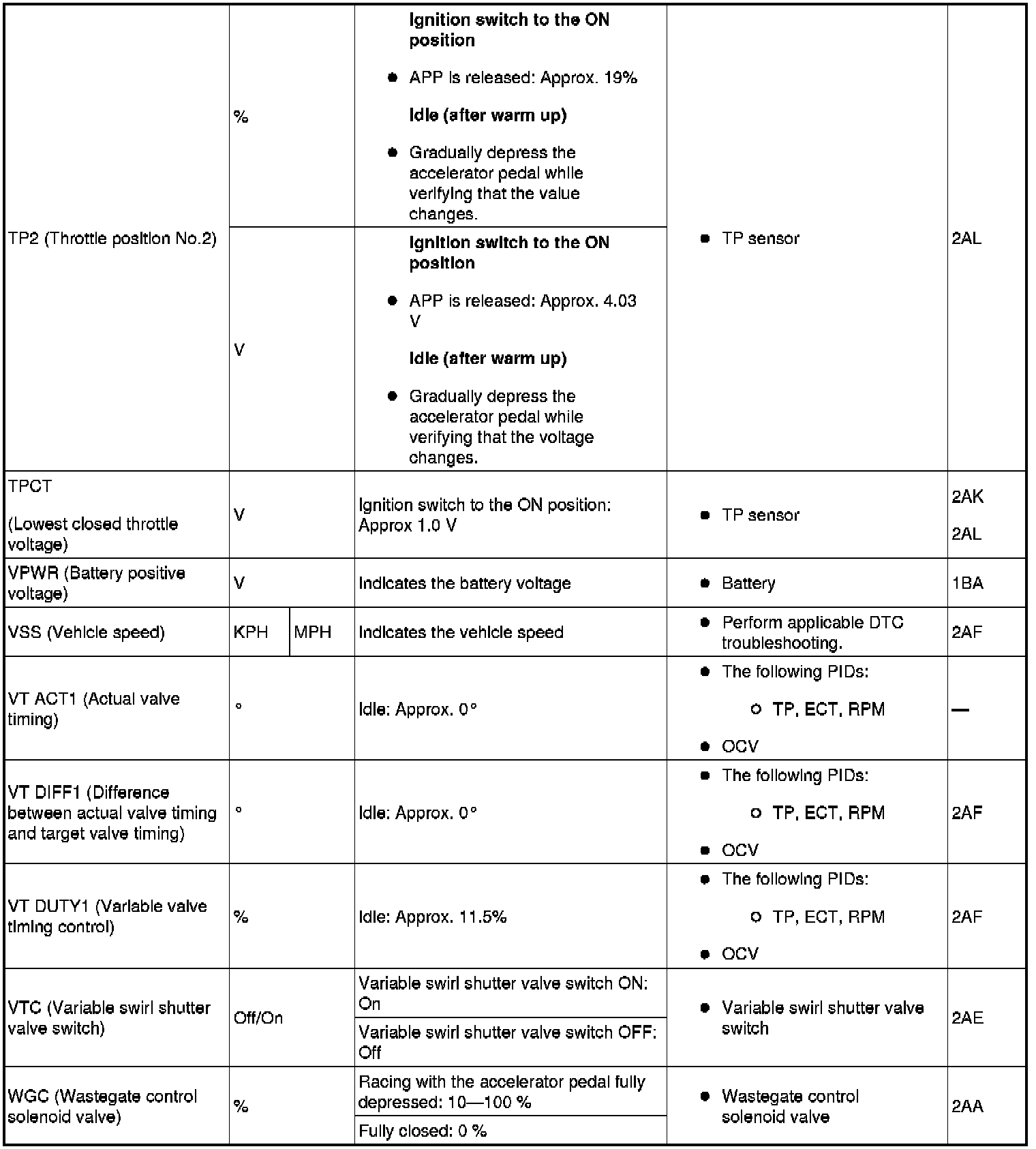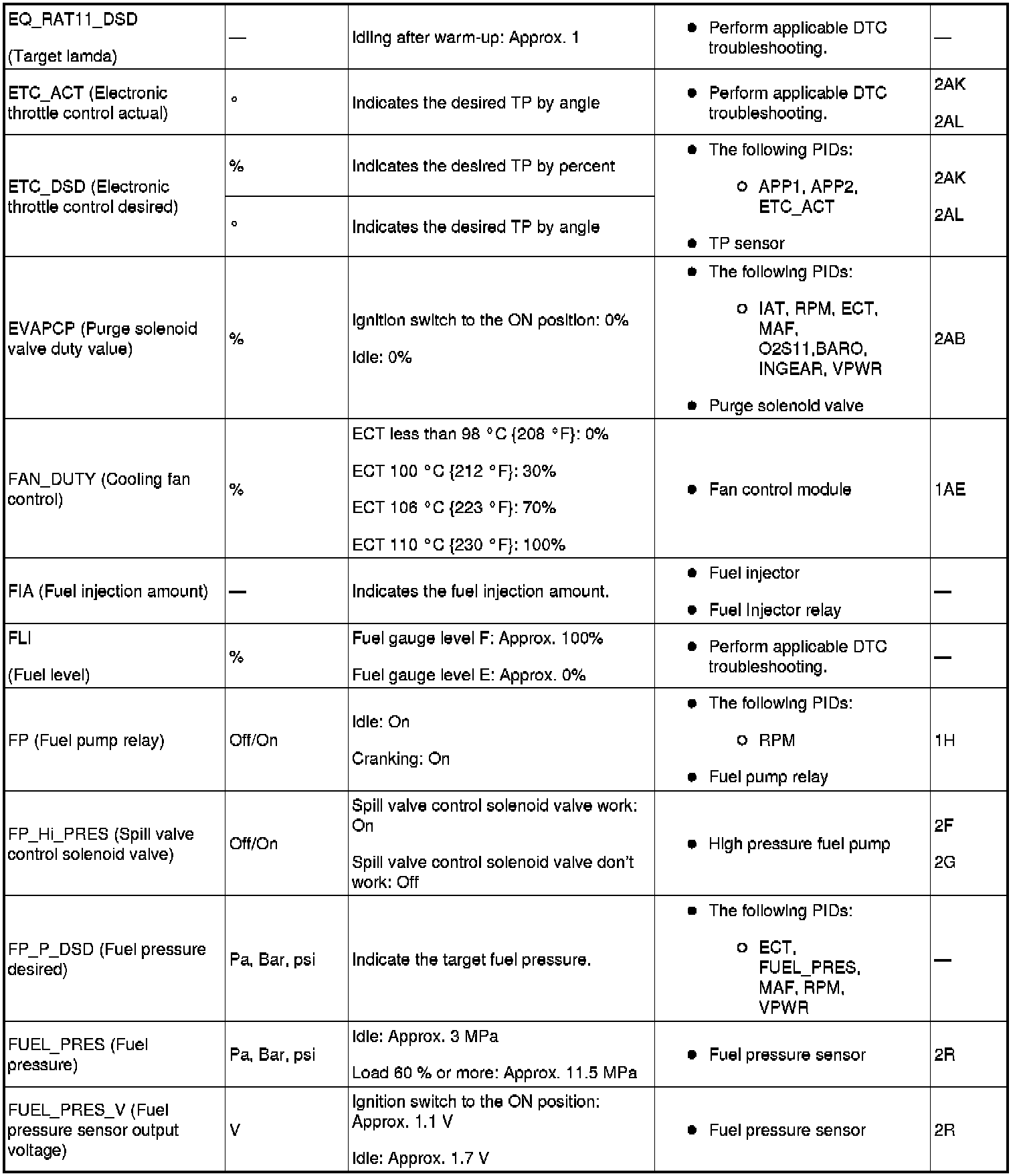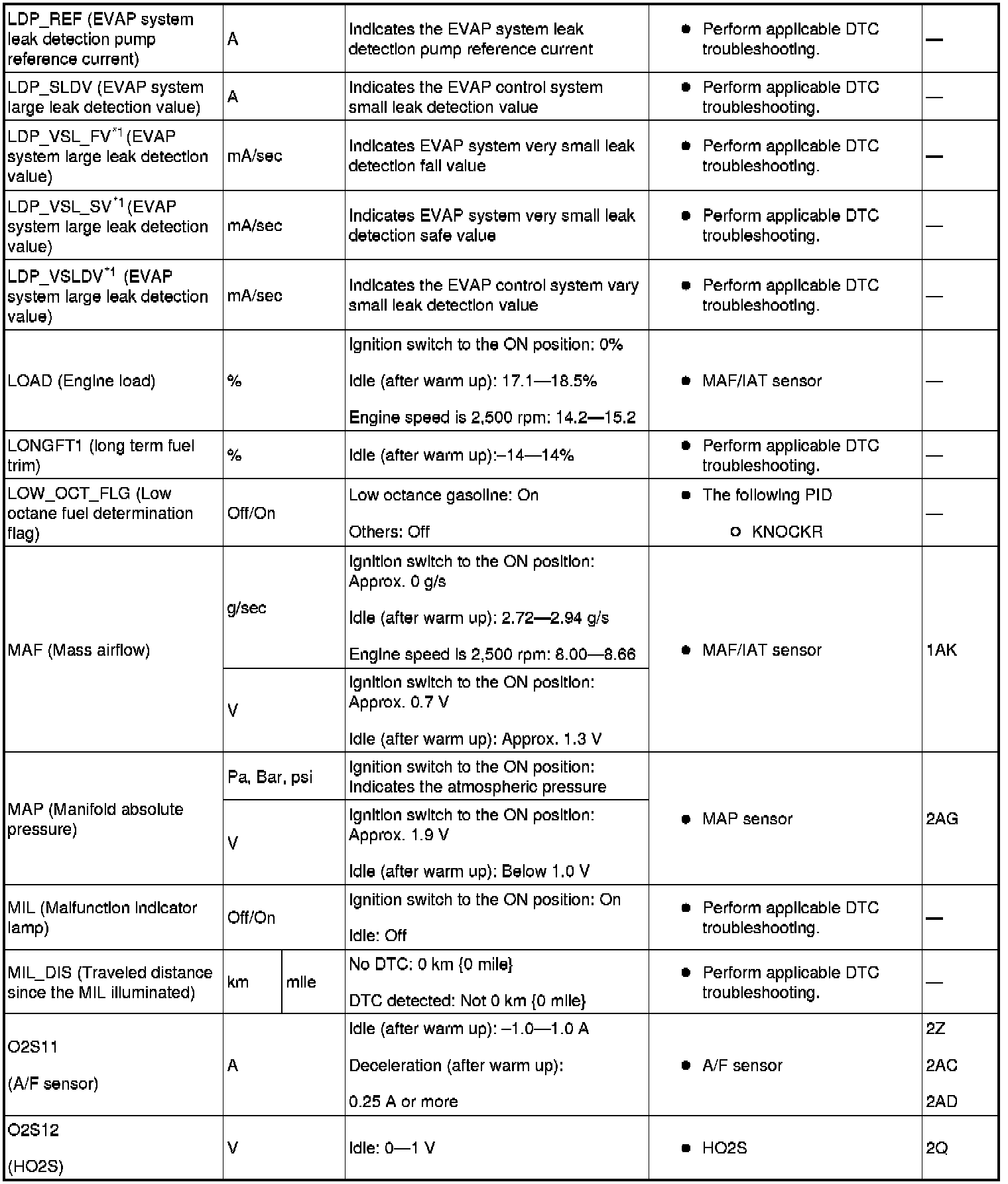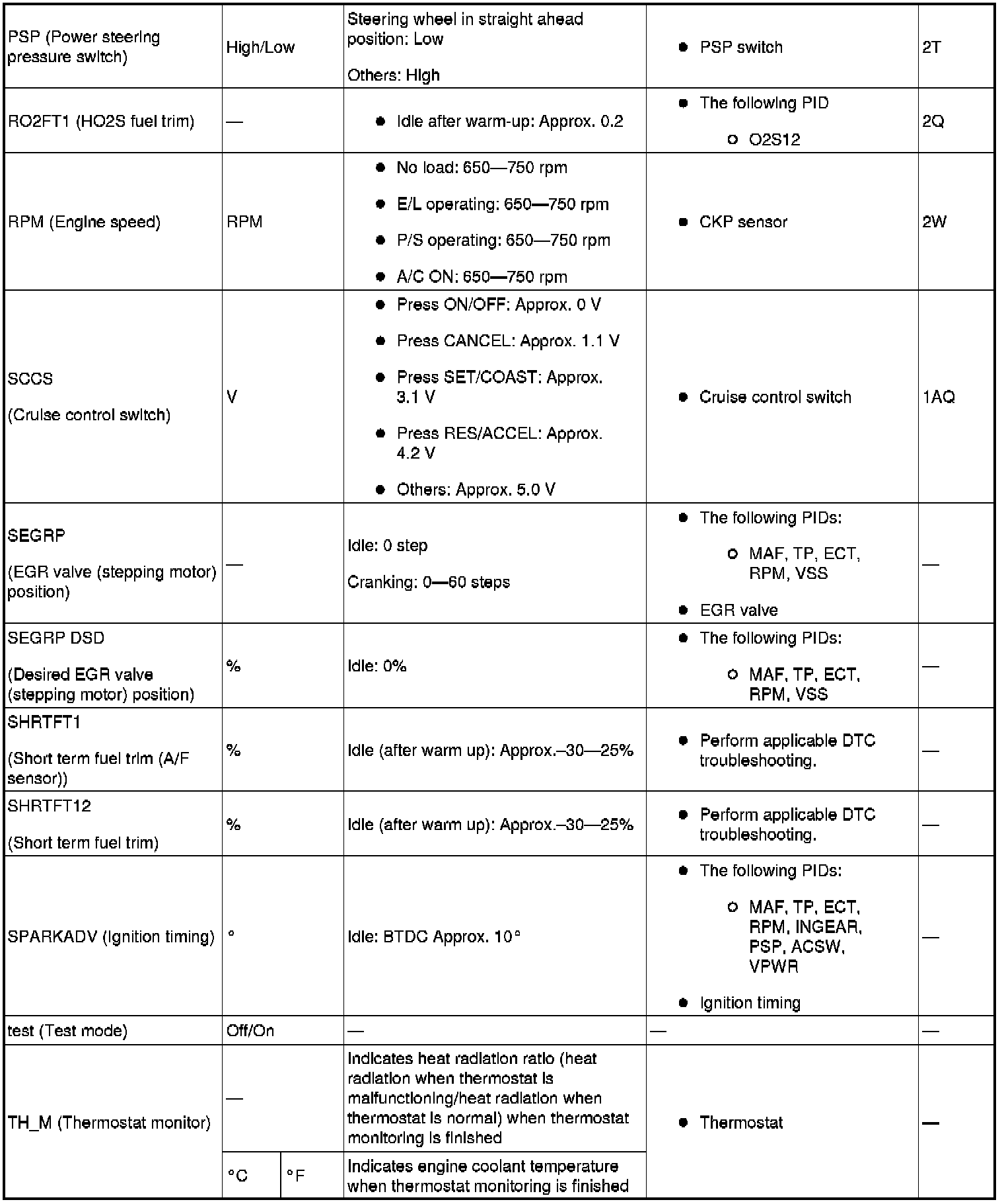 PID/Data Monitor Table (Reference) (Part 2):