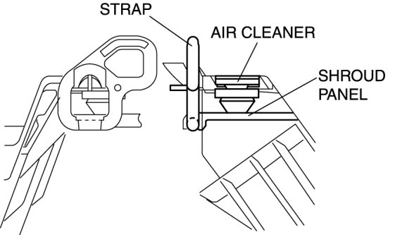 1. Using the strap, secure the shroud panel and the air cleaner case as shown in the figure.