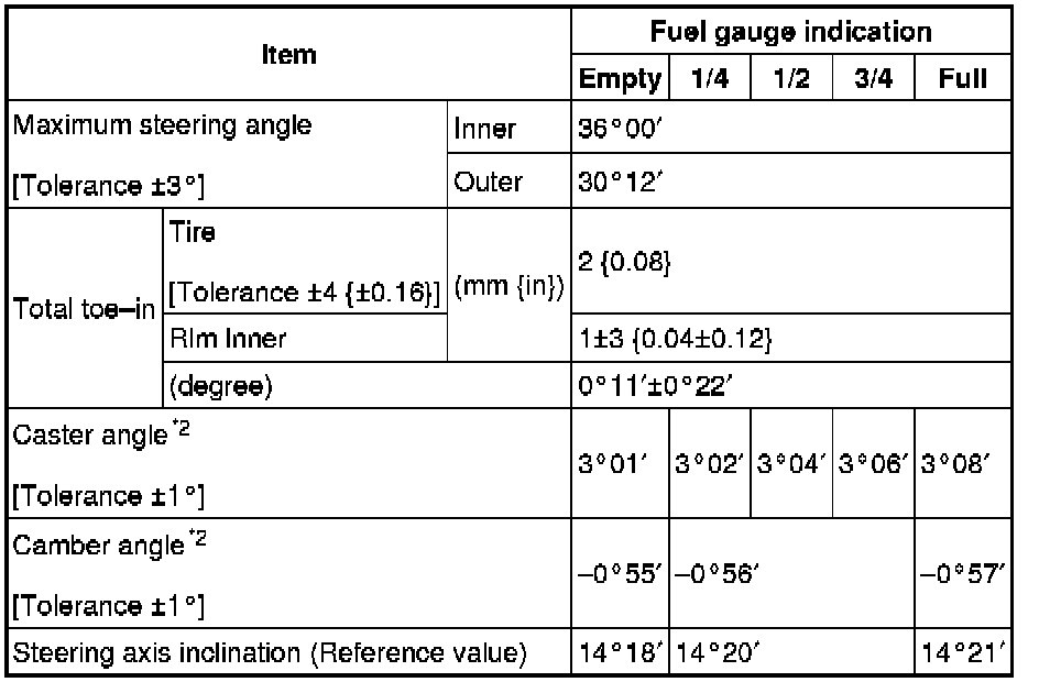 Front wheel alignment [LF and L3] (Unloaded)*1