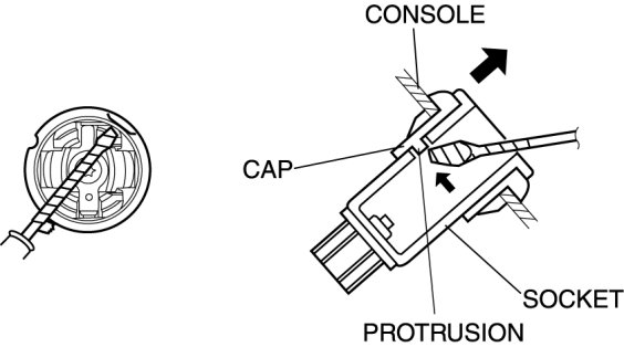 1. Remove the socket by pushing on the protrusion with a tape-wrapped flathead screwdriver inserted through the socket hole, and pulling the socket toward you.