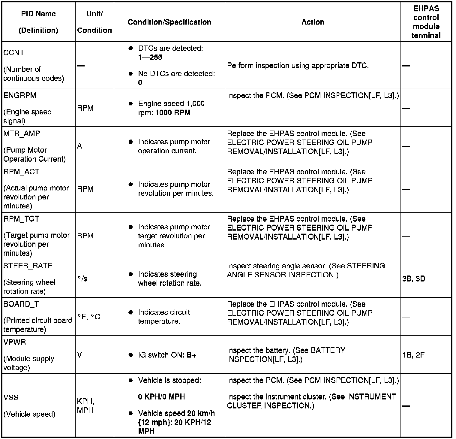 ELECTRO HYDRAULIC POWER ASSIST STEERING (EHPAS) ON-BOARD DIAGNOSIS [ELECTRO HYDRAULIC POWER ASSIST STEERING (EHPAS)]