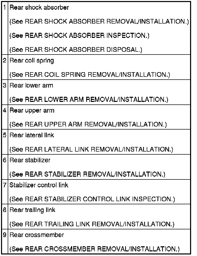 Rear Suspension Location Index