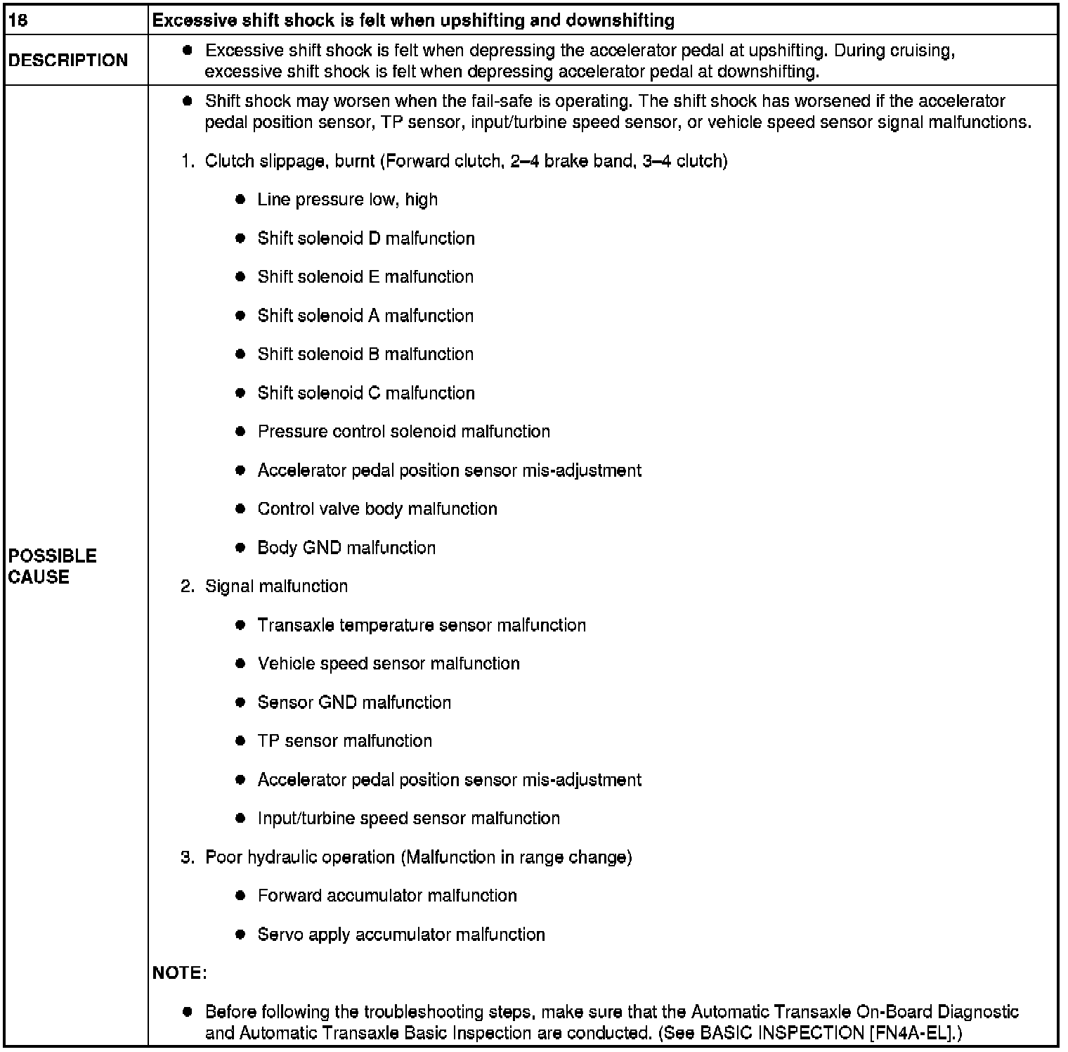 NO.18 EXCESSIVE SHIFT SHOCK IS FELT WHEN UPSHIFTING AND DOWNSHIFTING [FN4A-EL]
