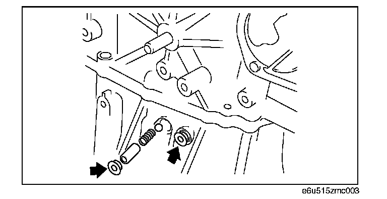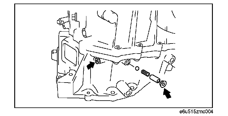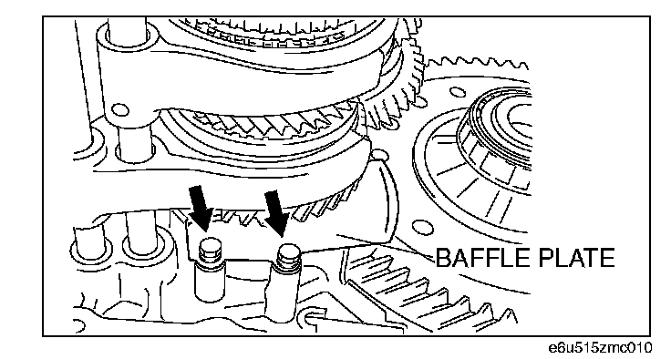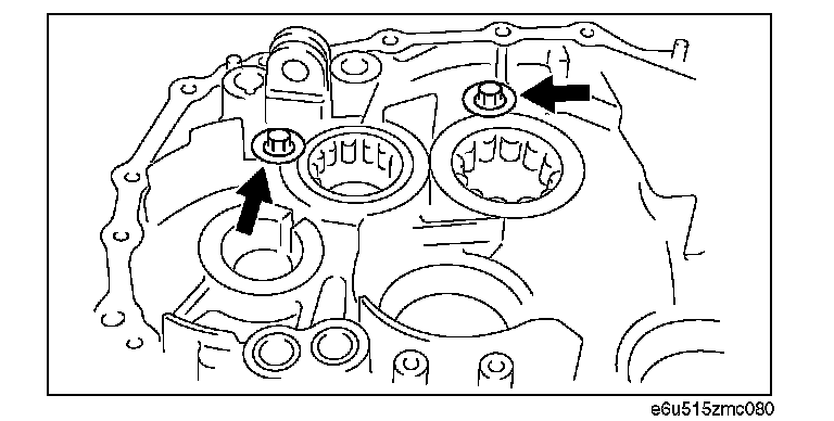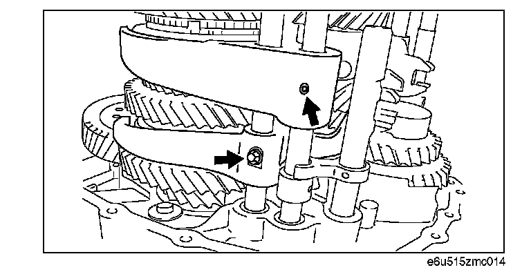 22. Remove the 5th/6th shift fork retaining bolt and reverse shift fork retaining bolt.