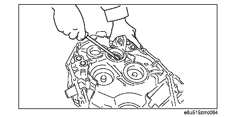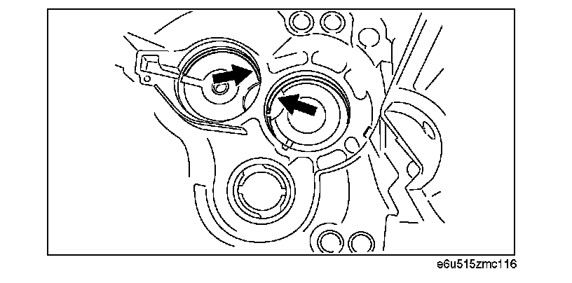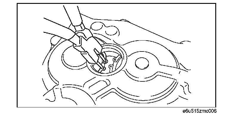 12. Stretch the snap ring of the primary shaft rear bearing and secondary shaft (No.1) rear bearing at the sealing cap hole, and remove the transaxle case.