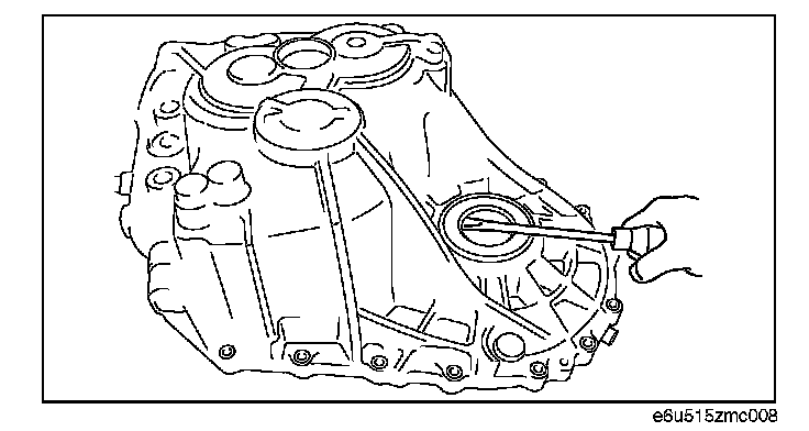 18. Remove the differential oil seal from the transaxle case using a flathead screwdriver.