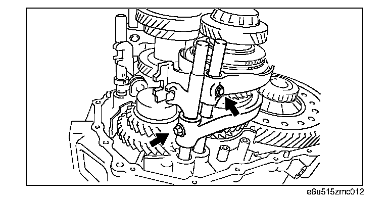 25. Remove the reverse shift fork and 5th/6th shift fork.