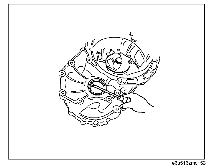 45. Remove the differential oil seal from the clutch housing using a flathead screwdriver.