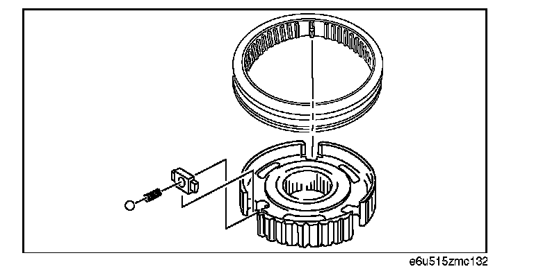 2. Assemble the synchronizer key, spring, steel ball, and clutch hub sleeve as shown in the figure.