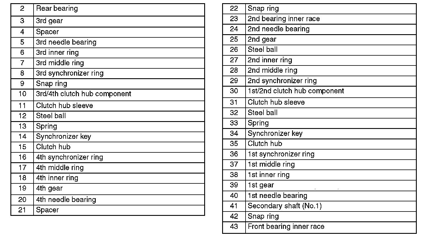 Secondary Shaft (No.1) Components Disassembly