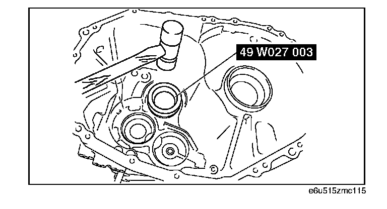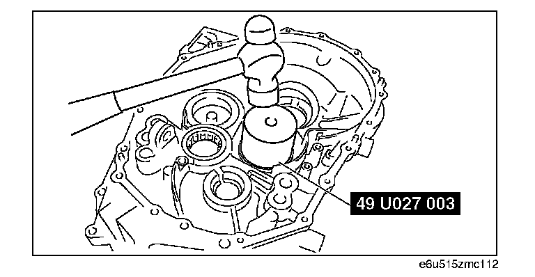 SECONDARY SHAFT (NO.2) BEARING PRELOAD ADJUSTMENT1. Install the secondary shaft (No.2) front bearing outer race into the clutch housing using the SST.