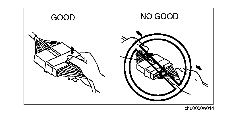 ^ Inspect the terminals of waterproof connectors from the connector side since they cannot be accessed from the wiring harness side.