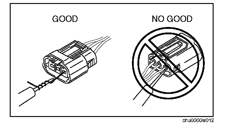 Caution: To prevent damage to the terminal, wrap a thin wire around the tester probe before inserting into terminal.