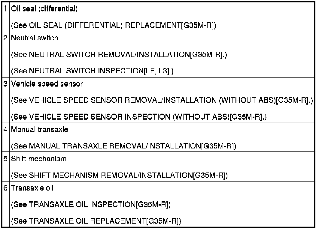 MANUAL TRANSAXLE LOCATION INDEX [G35M-R]