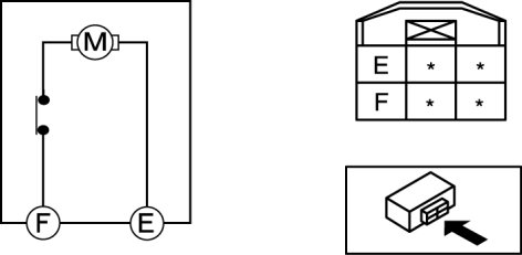 1. Apply battery positive voltage and connect ground to power window motor terminals E and F, and then inspect the power window motor operation.