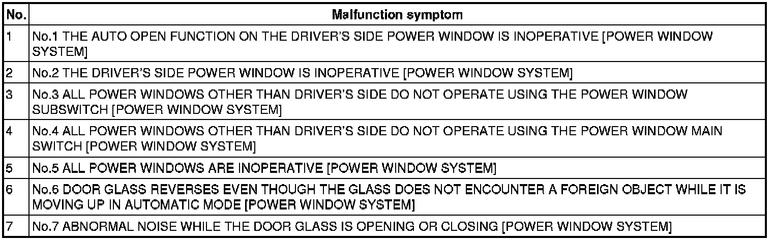 SYMPTOM TROUBLESHOOTING CHART [POWER WINDOW SYSTEM]
