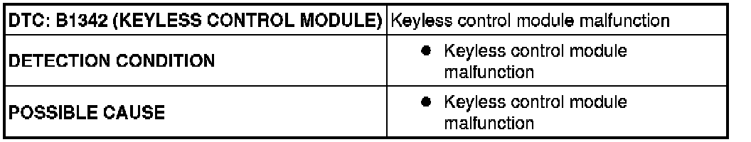 DTC B1342 (KEYLESS CONTROL MODULE) [IMMOBILIZER SYSTEM]
