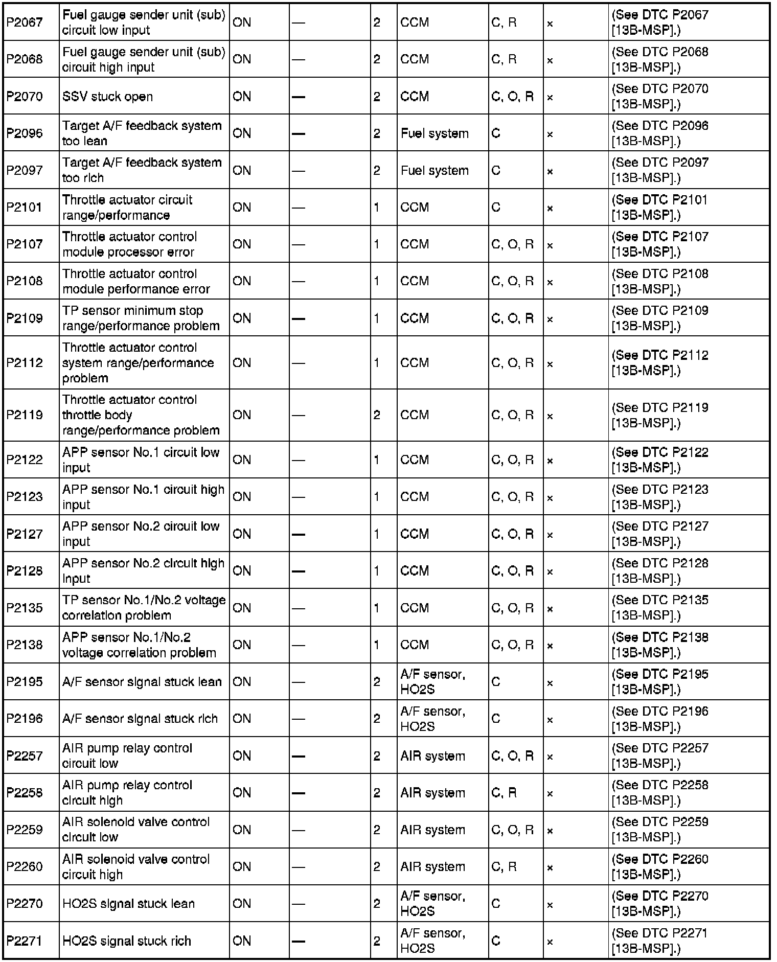 DTC TABLE [13B-MSP]