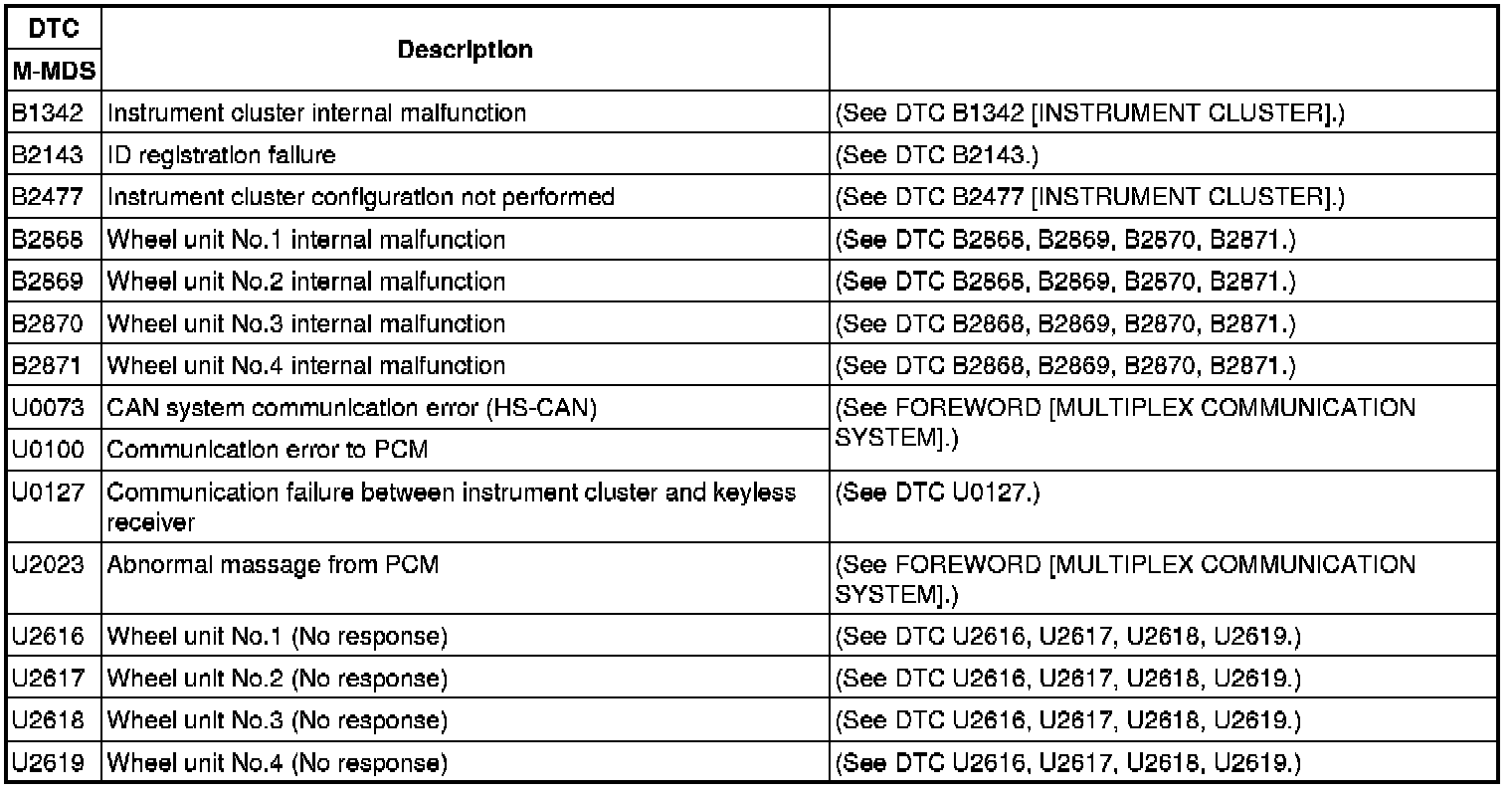 DTC Table [Tire Pressure Monitoring System (TPMS) On-Board Diagnosis]