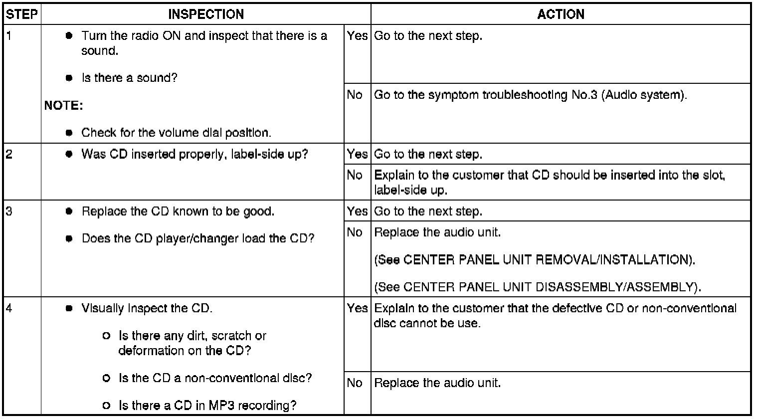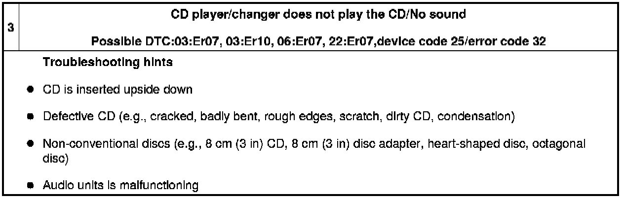 NO.3 CD PLAYER/CHANGER DOES NOT PLAY THE CD/NO SOUND [CD PLAYER/CHANGER]