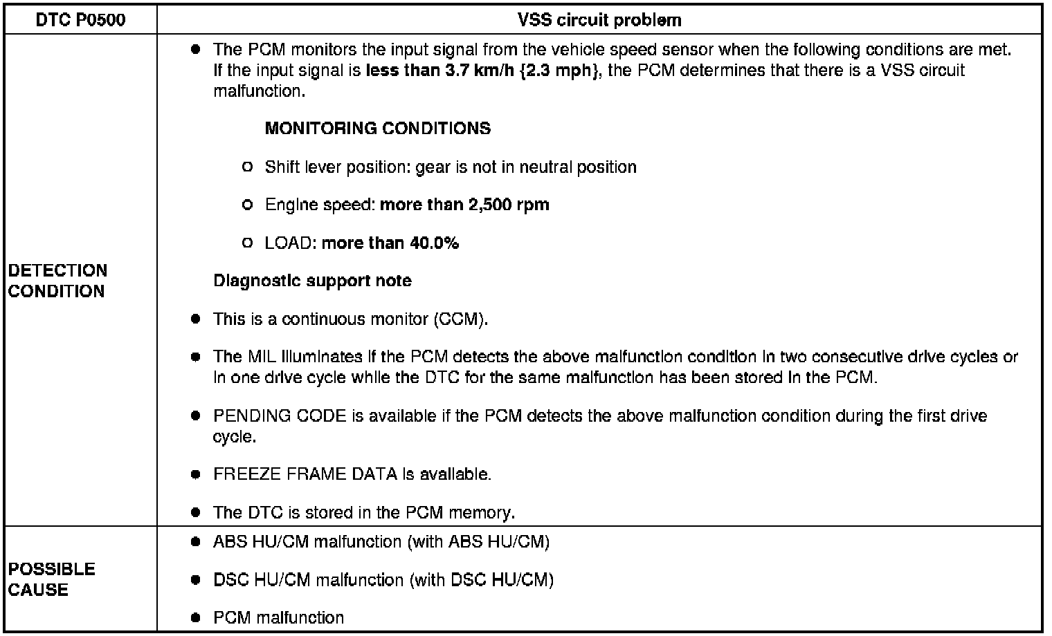 DTC P0500 [13B-MSP]
