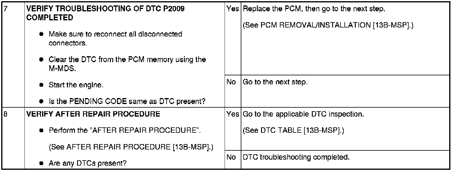 DTC P2009 [13B-MSP]