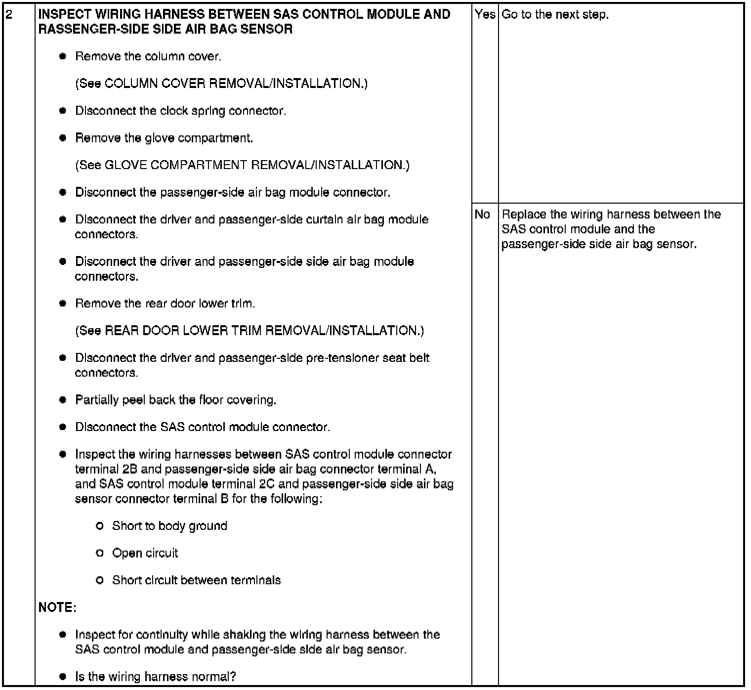 Detection Condition/Possible Cause: