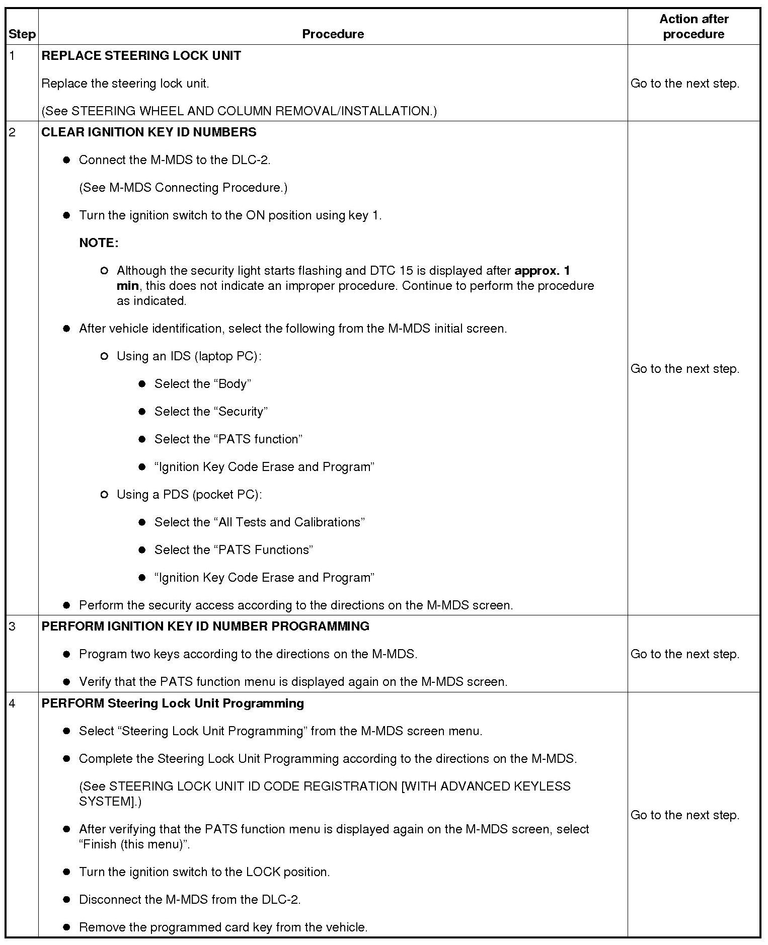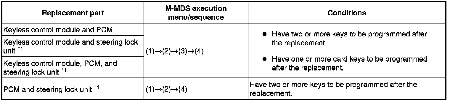 No.7 Programming Procedure Due to Simultaneous Replacement of Immobilizer System-related Parts (PCM, Keyless Control Module, and Steering Lock Unit)
