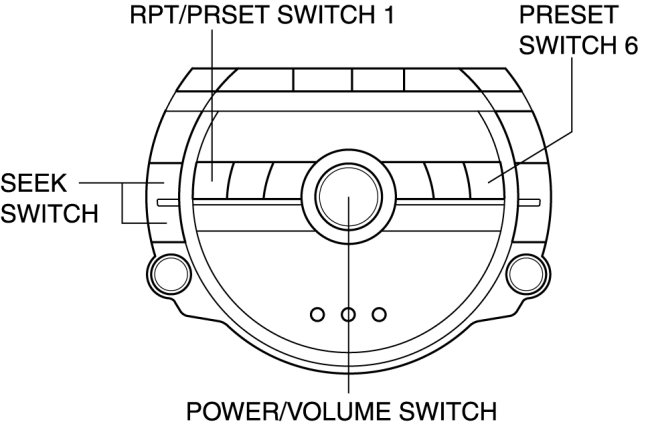 3. While pressing the POWER/VOLUME switch, simultaneously press the RPT/PRESET switch 1 and the PRESET switch 6 for 3 s or more.